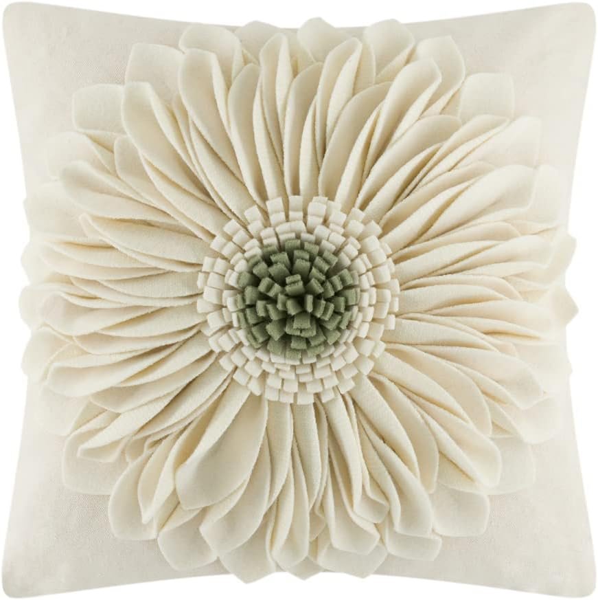 3D Sunflower Handmade Throw Pillow Covers Decorative Floral Pillowcases Cushion Covers for Couch Living Room Home Decor Creamy White 18x18 Inches