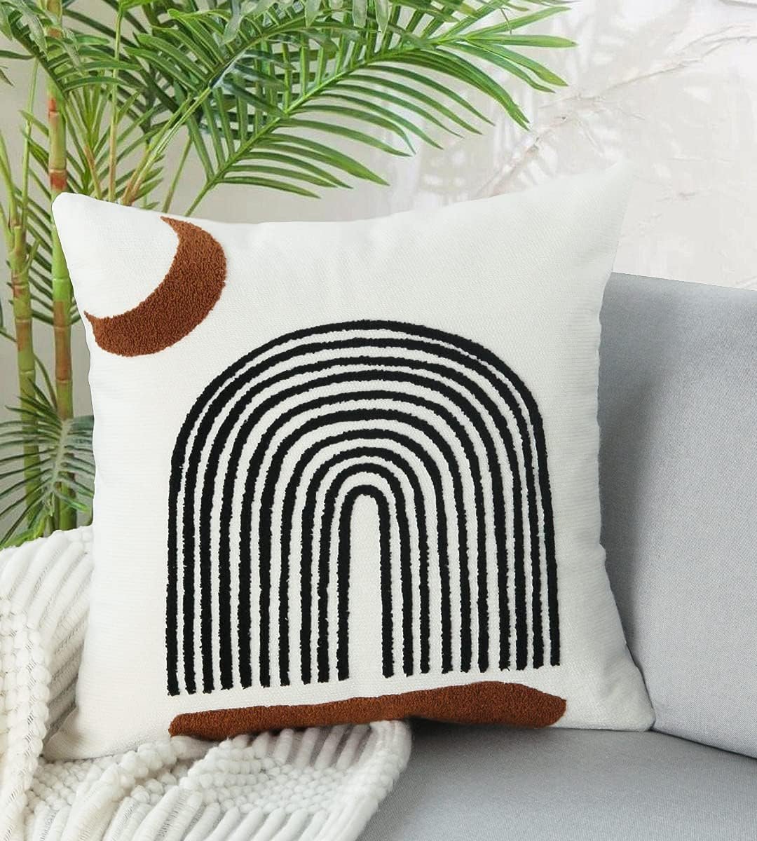 Modern Throw Pillows 18x18 Inches,Soft Woven Tufted Pillow Covers Square,Abstract Moon Pillow Case for Sofa Bedroom Living Room 1 Pcs