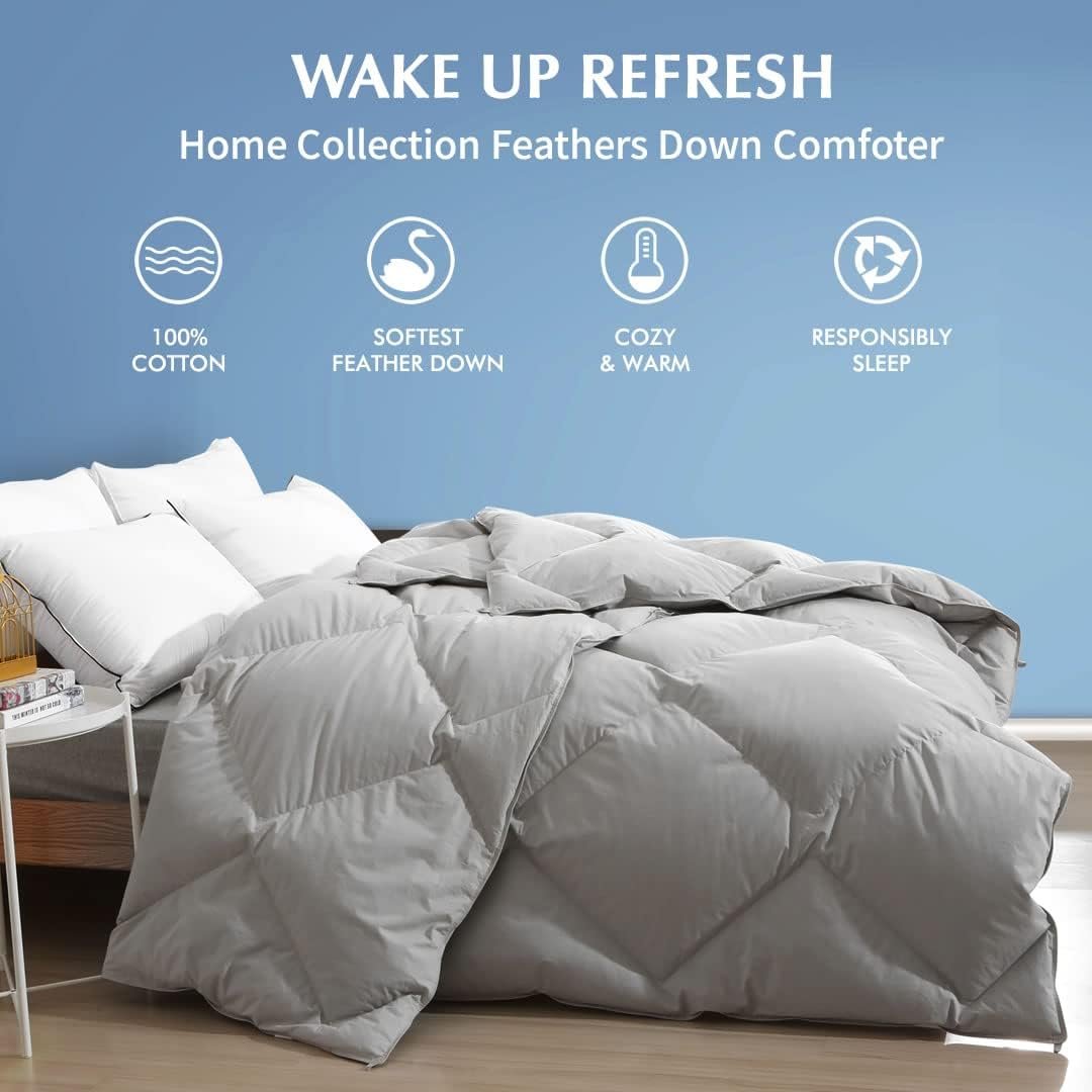 • 🌙Superior Material– Our queen-size down comforter is made of a down-proof 100% organic cotton cover and responsibly-sourced feathers & down blend filler, which is more soft, durable, and breathable than other down alternative comforters, and better for your restful sleep.
